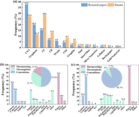 图1 压阻式结构健康监测领域中关于导电填料与基体的研究状况