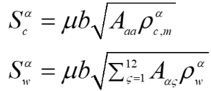 考虑胞内区域可动位错和胞壁区域中由不可动位错产生的滑移抗力贡献: