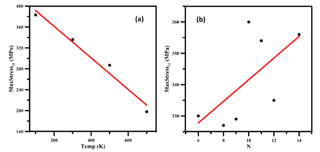 图4 分子动力学模拟得到的临界应力与(a)温度及(b)析出相铜原子层数的依赖关系(初始滑移面位于零位置)