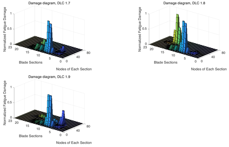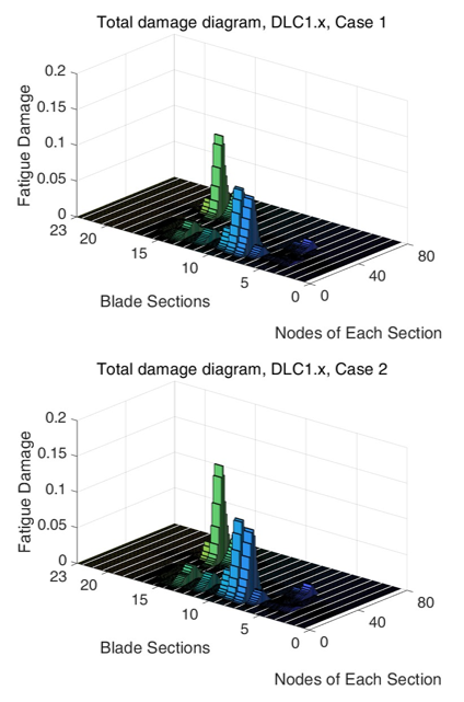 (3)提出了一套完整的漂浮式风机叶片疲劳评估全链条分析方法。该方法将非高斯风场构建、风机耦合动力学仿真、叶片结构响应计算、疲劳热点识别以及疲劳寿命预测有机结合,形成从风场输入到寿命输出的统一分析流程(图3)。通过该方法,可以在同一计算框架内系统评估不同风速统计模型对叶片疲劳行为的影响,避免了传统分析中风场、载荷与疲劳评估相互割裂的问题,为工程应用提供了可直接实施的分析路径。