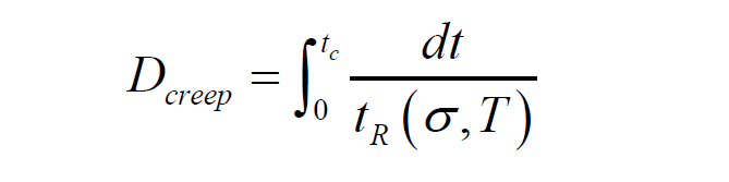 其中,tc表示加载循环的持续时间,tR是应力作用下破裂时间,T为温度。