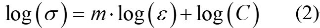 (1)由于多数BCC材料在室温下具有一定的应变率敏感性,且超声疲劳试验的有效应变速率较高(当应变为0.001时,应变率约为80 s-1),因此明确C103在室温下的应变率敏感性具有重要意义。对C103样品开展了压缩试验,以计算应变率敏感性参数(式1),进而将屈服强度换算至超声疲劳试验的应变率条件下。结果如图1所示,不同应变率下的压缩应力-应变曲线结合公式(2)计算应变率敏感性,通过对不同真实应变下的参数取平均值,最终得到C103的应变率敏感性参数m为0.022。同时,还采用了纳米压痕试验来更局部地进行测量(图1右下),得到的应变率敏感性结果与宏观压缩试验结果高度一致,表明纳米压痕是一种快速有效的评估室温应变率敏感性的方法。