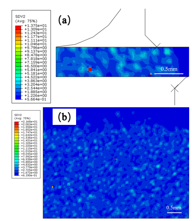 (2)结合蒙特卡洛方法的有限元模拟方法:为了模拟材料内部的微观不确定性,研究采用空间蒙特卡洛方法(Monte Carlo method),在有限元模型的高损伤区域引入随机场,模拟结果的分散性与试验结果重合度。